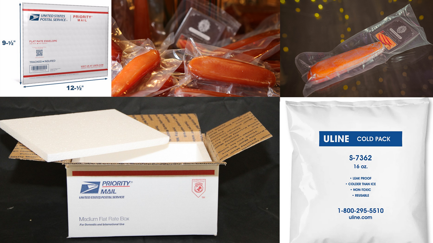 We at Egyptian Bottarga, Ship with Cold Packs Inside Ziplock Bag Transparent Thickened Zipper Sealed Bag. With Priority Mail Padded Envelope. By USPS Priority Mail with Tracking and Delivery 1-3 business days. For Big Orders We ship in Priority Mail USPS Medium Box with Insulated Foam Box with Cold Packs Inside Ziplock Bag Transparent Thickened Zipper Sealed Bag.